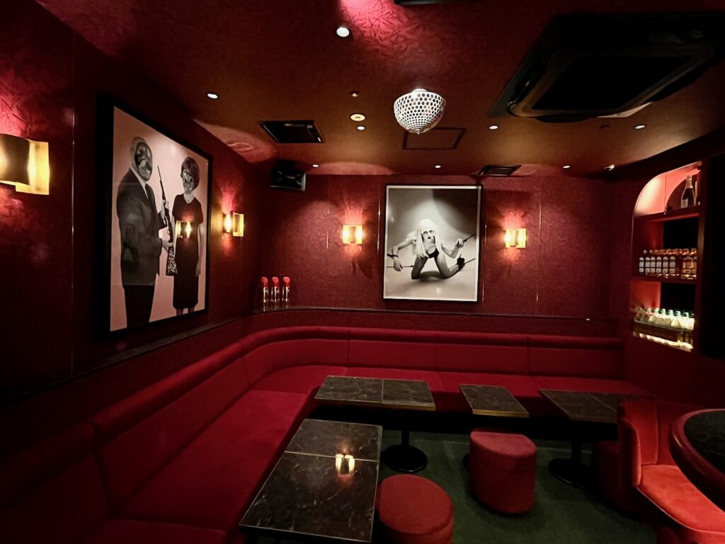 店内は名前の通り「ルージュ」をイメージした赤が基調で、写真家・荒木経惟(アラーキー)さんや新田桂一さんの作品が飾られています。いわゆる昔ながらのスナックというより、アートギャラリーとバーとスナックの間のような雰囲気で、「スナック初めてでちょっと緊張する…」という人でも入りやすい空気感です。